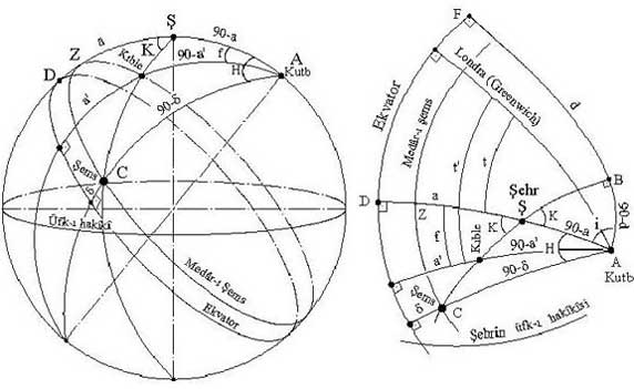 yol ile bulunur: 1- Kıble açısı ile. 2- Kıble sâati ile. 1-